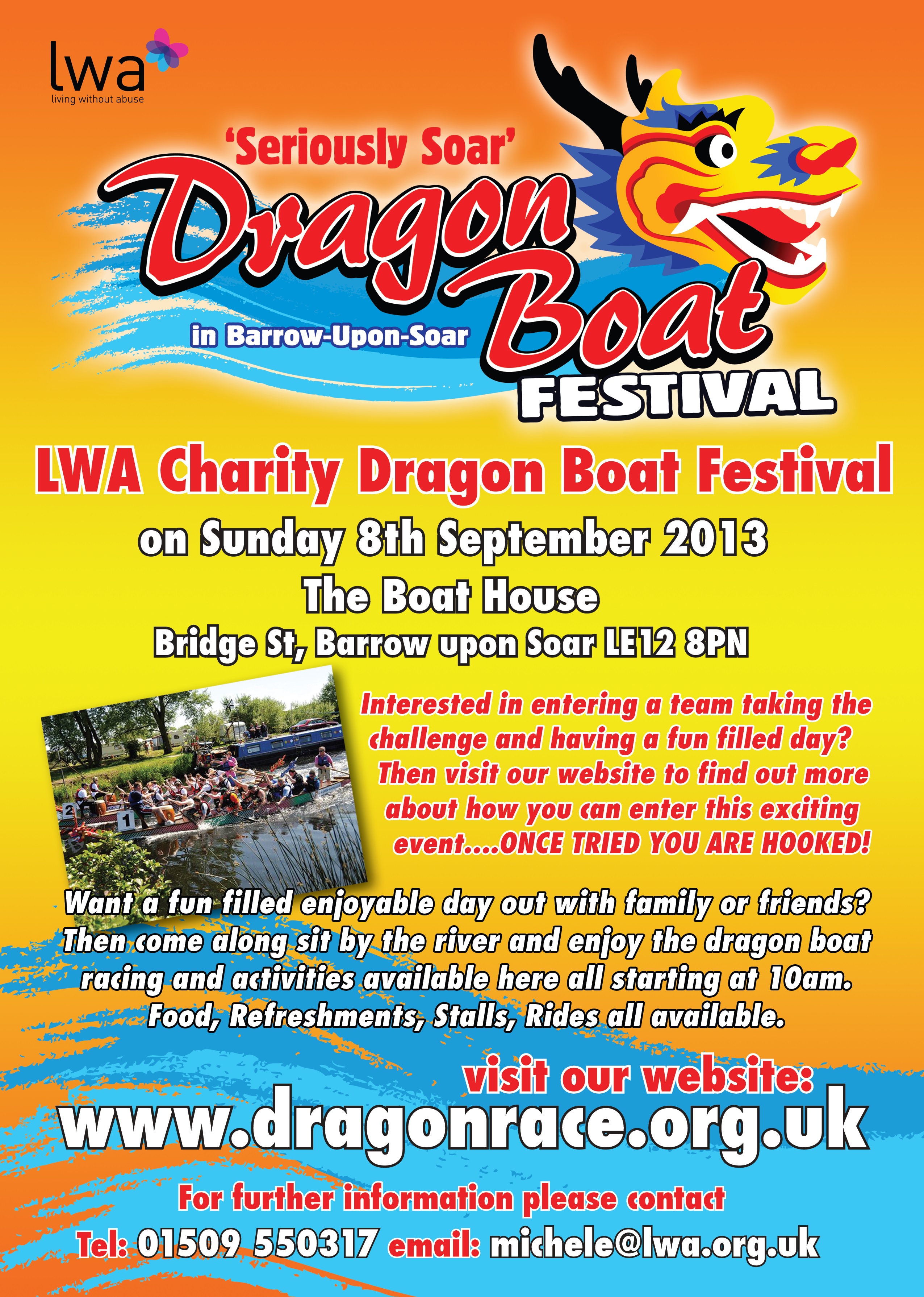 Local charity Living Without Abuse is hosting its annual dragon boat festival on Sunday 8th September at the Boat House, Bridge St in Barrow upon Soar LE12 8PN…