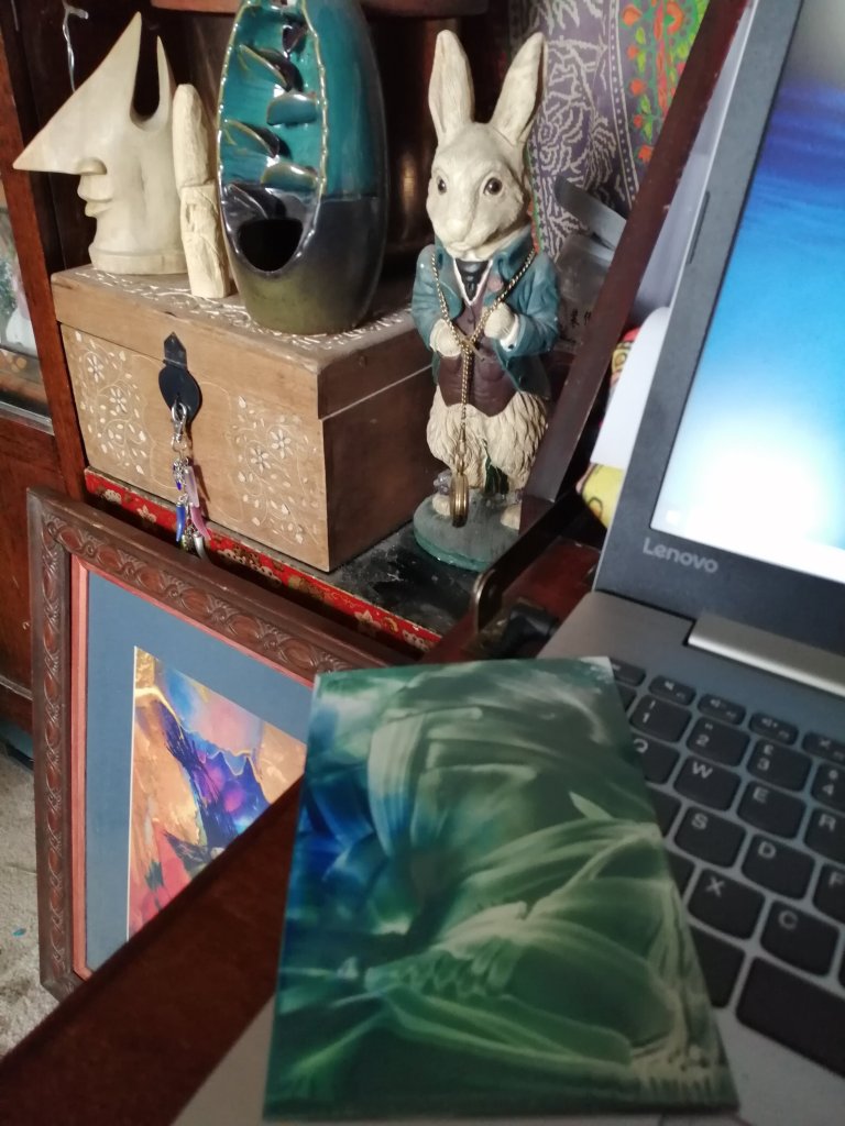 Out of about 30 photos, the only one that catches the green is this one… The one, with The White Rabbit stood behind it and now my wax knight has disappeared down the rabbit hole that’s appeared in the image…