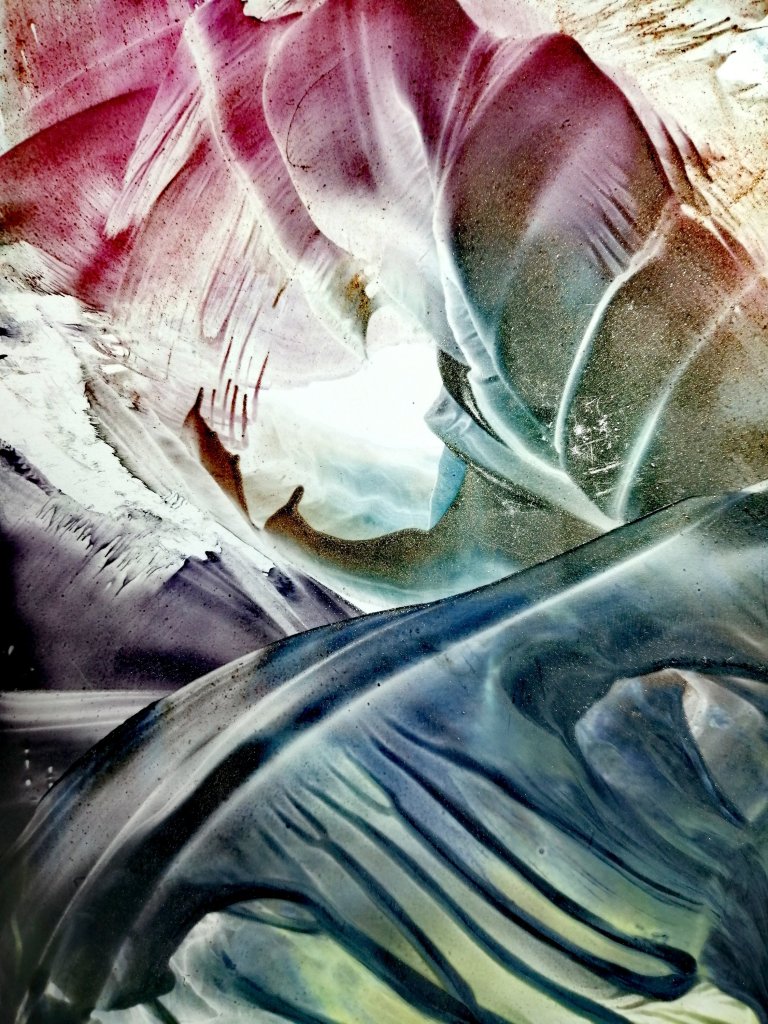 It feels as though this is inside the tunnel that is suggested in the first image… The shape centrally towards the top looks like the exit, an opening that reminds me of the Ace of Pentacles and moon gates… When I see the Ace of Pentacles with its far off field ahead of the field you’re in, I think of it as the beginning of something that has longevity, something that may feel to plod along slowly at times, but something that materialises solid and sustainable results… Here it’s a reminder that as one project ends, another begins and it’s a nod to there being another project further down the line…